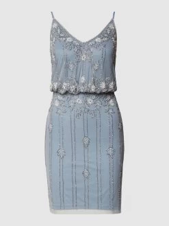 LACE & BEADS Cocktailkleid Mit Floralem Muster Aus Zierperlen – Hellblau